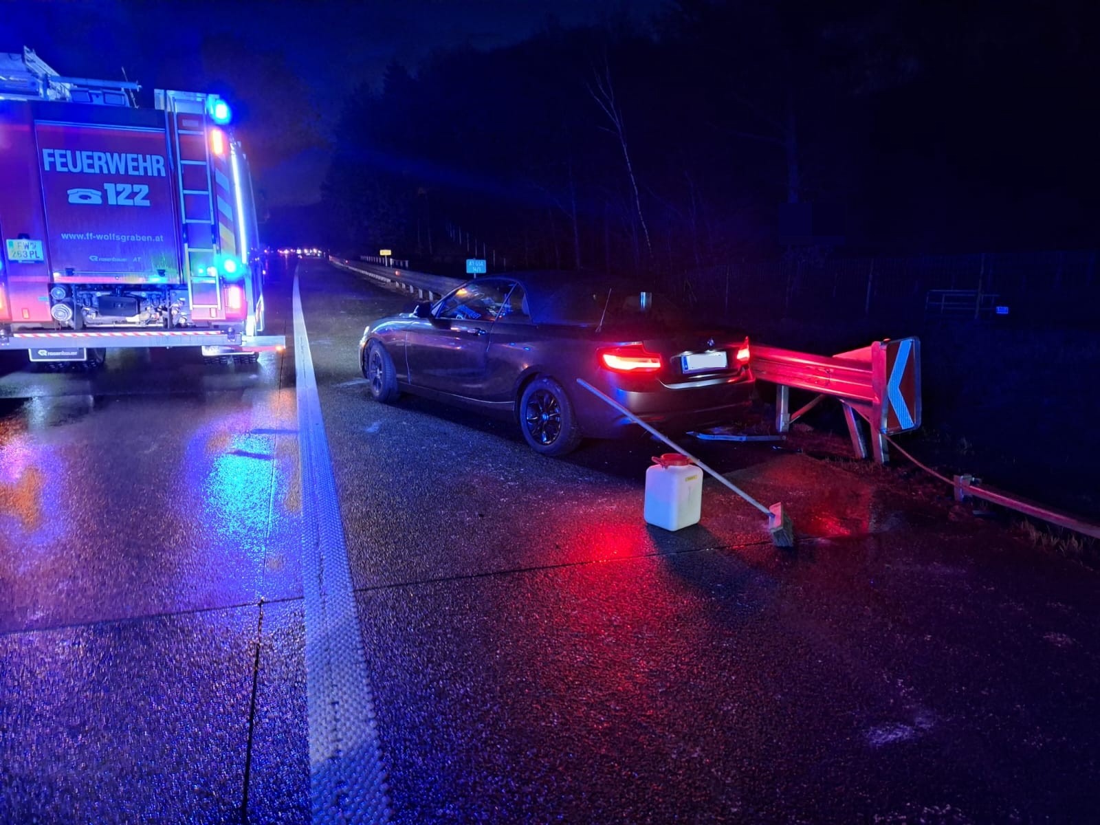 Bereits um 05:56 Uhr wurde die Mannschaft der Feuerwehr Pressbaum auf die A1-Westautobahn zu einem Verkehrsunfall mit dem Hinweis „PKW auf Dach“ alarmiert. Bereits beim Eintreffen an der Unfallstelle wurde dem Einsatzleiter mitgeteilt, dass noch eine Person im verunfallten Fahrzeug eingeschlossen sei. Unverzüglich erfolgte die Nachalarmierung der Feuerwehr Wolfsgraben zur Unterstützung. Nach der Erstversorgung des Rettungsdienstes konnte mit der Befreiung der eingeschlossenen Person begonnen werden. Durch vorsichtiges Anheben und gleichzeitiges Abstützen des Fahrzeuges konnte eine Öffnung hergestellt werden, welche eine schonende Rettung des Lenkers ermöglichte.